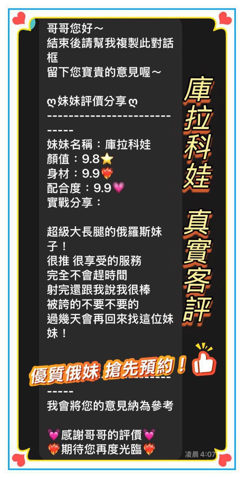 建議客戶提前一小時預約,臨時預約可能會遇到喜歡的女孩忙碌中