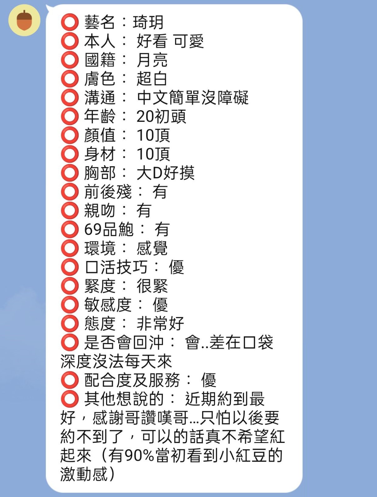 喜歡互動聊天,聲音嬌滴滴    Review by 蔡**