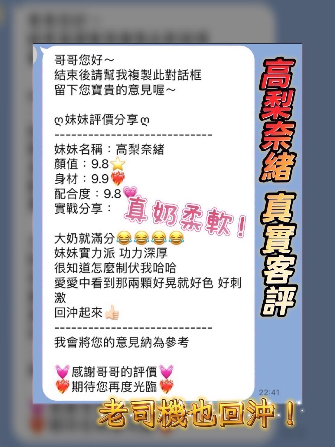 強勢回歸超級搶手,曾經締造客人連包3天3夜佳績,真實巨乳 ,顏值堪比線上遊戲女主,服務沒話說 ,個個都說讚👍,用過都上癮、絕對無法忘掉他的魅力溫柔,不用我多說~