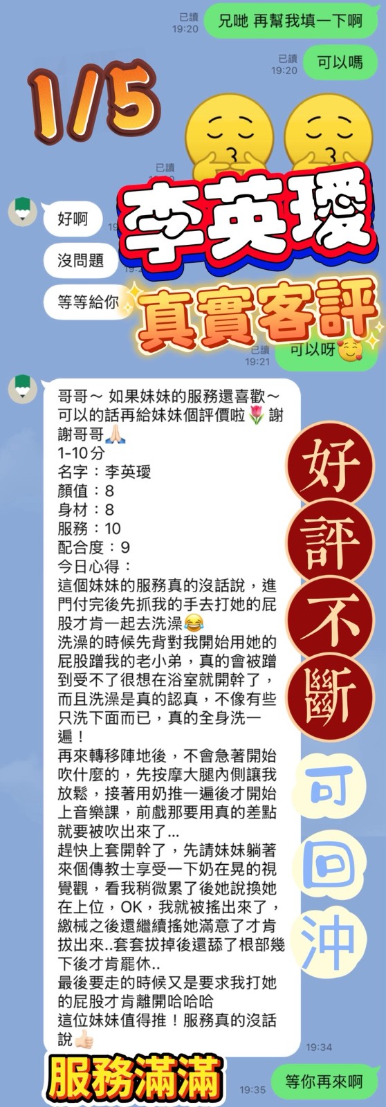(→)口爆+500(・)顏射+500(・)自慰秀+500(・)無臉攝影+1000(・)2S+500(・)2+1(送S)(・)3+1(送時間)(・)5+3(送時間)